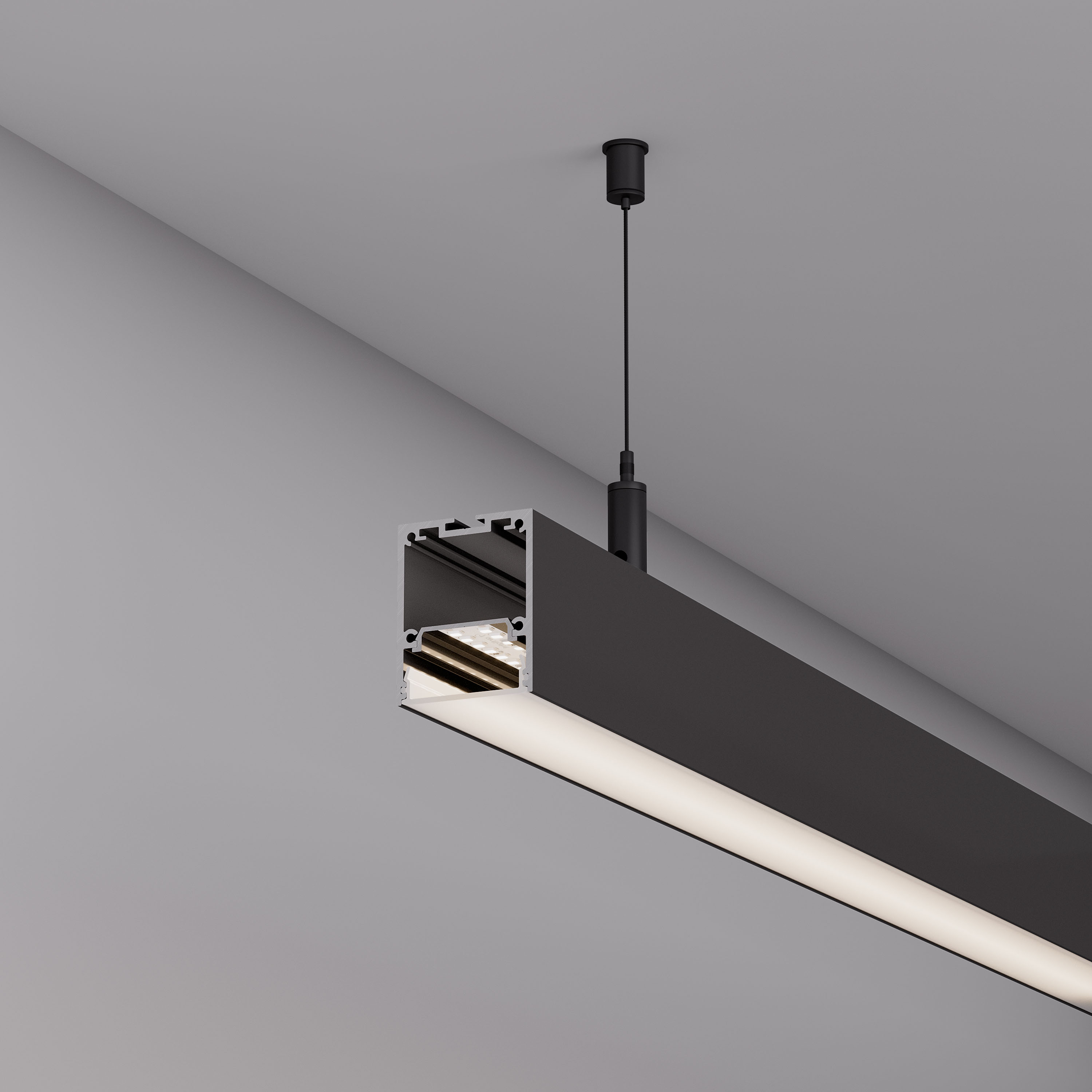 Накладной/подвесной профиль из алюминия черного цвета для основного освещения с возможностью герметизации до IP54 с помощью аксессуаров к профилю без дополнительного использования силиконового герметика, до IP65 с помощью аксессуаров к профилю при условии дополнительного использования силиконового герметика. Габаритные размеры профиля составляют 2000 мм в длину, 40 мм в ширину и 50 мм в высоту. Площадка для установки светодиодных лент позволяет использовать ленту шириной до 24 мм и мощностью до 36 Вт/м. Это обеспечивает гибкость в выборе светодиодных лент и позволяет создать потрясающие световые решения. Экран, заглушки и другие аксессуары не включены в комплект и приобретаются отдельно. Цена указана за 1 метр профиля. Отличное решение для создания современных световых проектов.