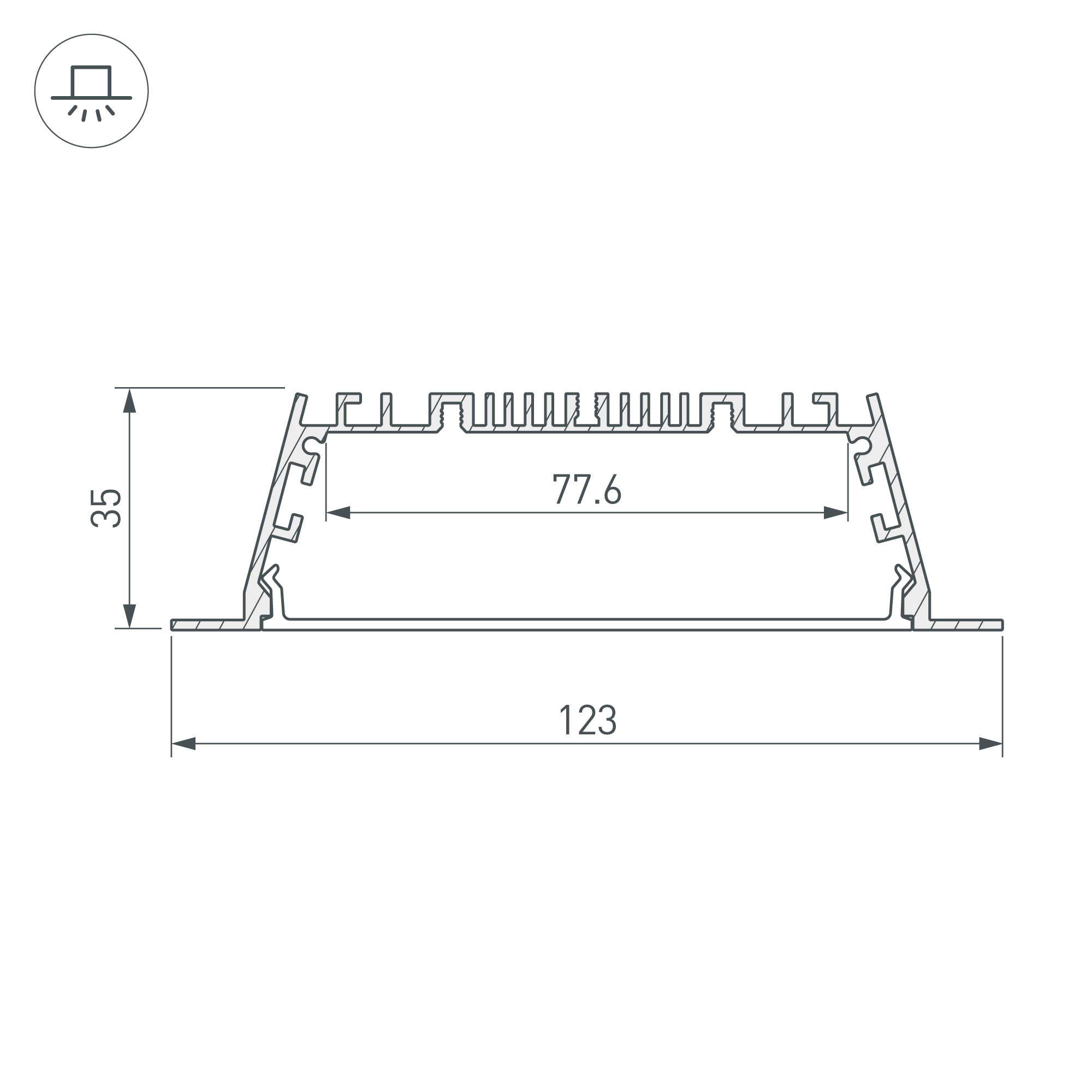 Встраиваемый профиль с накладным фланцем из анодированного алюминия для основного освещения и контурной подсветки в комплекте с матовым рассеивателем со светопропусканием 67% . Габаритные размеры профиля составляют 2000 мм в длину, 123 мм в ширину и 35 мм в высоту. Площадка для установки светодиодных лент позволяет использовать ленту шириной до 77 мм и мощностью до 52 Вт/м. Это обеспечивает гибкость в выборе светодиодных лент и создает потрясающие световые решения. Заглушки и другие аксессуары не включены в комплект и приобретаются отдельно. Цена указана за комплект. Отличное решение для создания современных световых проектов.